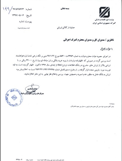 به گزارش ایبِنا، در ابلاغیه گمرک خطاب به ناظرین، مدیران کل و مدیران گمرکات اجرایی آمده است: در اجرای مصوبه هیات محترم دولت در تاریخ ۹۷.۰۱.۲۲ مبنی بر تک نرخی شدن ارز، خواهشمند است بررسی شود در صورتی که اظهارنامه واردات با رویه خرید بانکی و ارز مبادله ای و یا با نرخ ۴۲ هزار ریالی و یا ارزشی بالاتر از ارزش های مندرج در بانک اطلاعات ارزش از ابتدای سال اظهار شده، به قید فوریت مورد بازبینی دوباره قرار گرفته و با رعایت دستورالعمل نسبت به اعلام بیش بود ارزش به بانک عامل به منظور عدم تسویه و همچنین جهت بررسی و اعلام نظر نهایی به این دفتر اعلام نمایند.