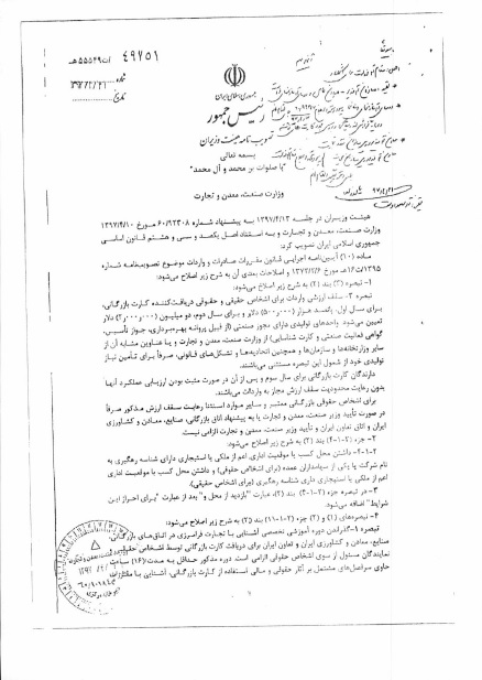 پیش از این و در تاریخ ۲۱ تیرماه امسال مصوبه ای از سوی هیات وزیران ارایه شد که در یکی از بندهای آن سقف ارزشی واردات برای اشخاص حقیقی و حقوقی دریافت کننده کارت بازرگانی برای سال اول ۵۰۰ هزار دلار و برای سال دوم ۲ میلیون دلار تعیین و محدودیت هایی در استفاده از کارت های بازرگانی اعمال شد.