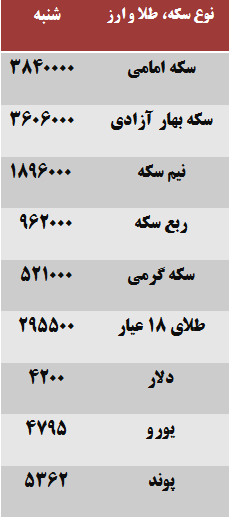 بر اساس این گزارش، هر قطعه سکه گرمی ۵۲۱ هزار تومان معامله شد و هر گرم طلای ۱۸ عیار نیز به ارزش ۲۹۵ هزار و ۵۰۰ تومان فروخته شد.