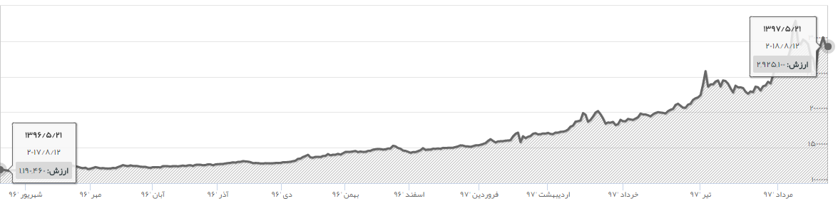 در ۲۱ مردادماه ۹۷ رسیده است که طی این مدت با رشد ۱۵۸.۸۰ درصد مواجه بوده است.