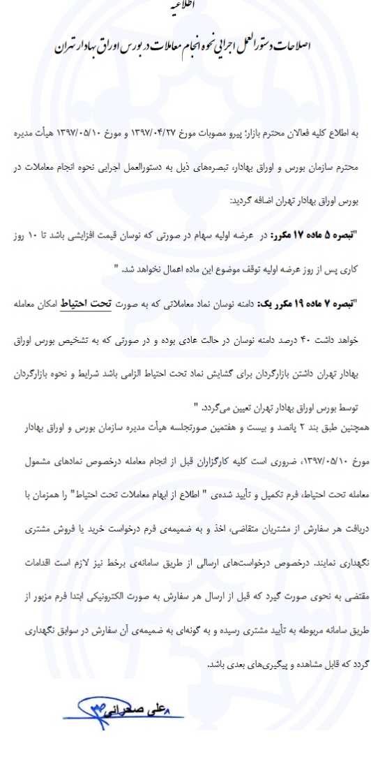 تاثیر اصلاح دستورالعمل ها در توقف و بازگشایی نمادها