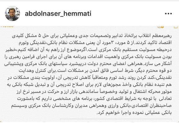 اگر موضوع ارز را هم به آن اضافه کنیم، خطیر بودن مسولیت بانک مرکزی واهمیت اقدامات و برنامه های آن برای اجرای فرامین رهبری را آشکار می سازد. همراهی اعضای محترم دولت در پیشبرد سیاستهای بانک مرکزی و پشتیبانی دو قوه محترم دیگر، شرط اساسی فائق آمدن بر مشکلات است.
