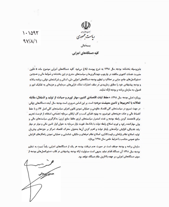بخشنامه بودجه سال ۹۸ به دستگاه‌ها ابلاغ شد