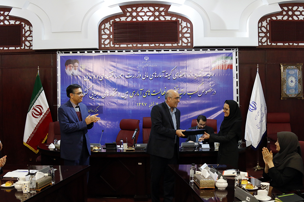 مراسم تقدیر از اعضای کمیته آمارهای مالی وزارت امور اقتصادی و دارایی در خصوص کسب رتبه نخست فعالیتهای آماری بین دستگاههای اجرایی کشور