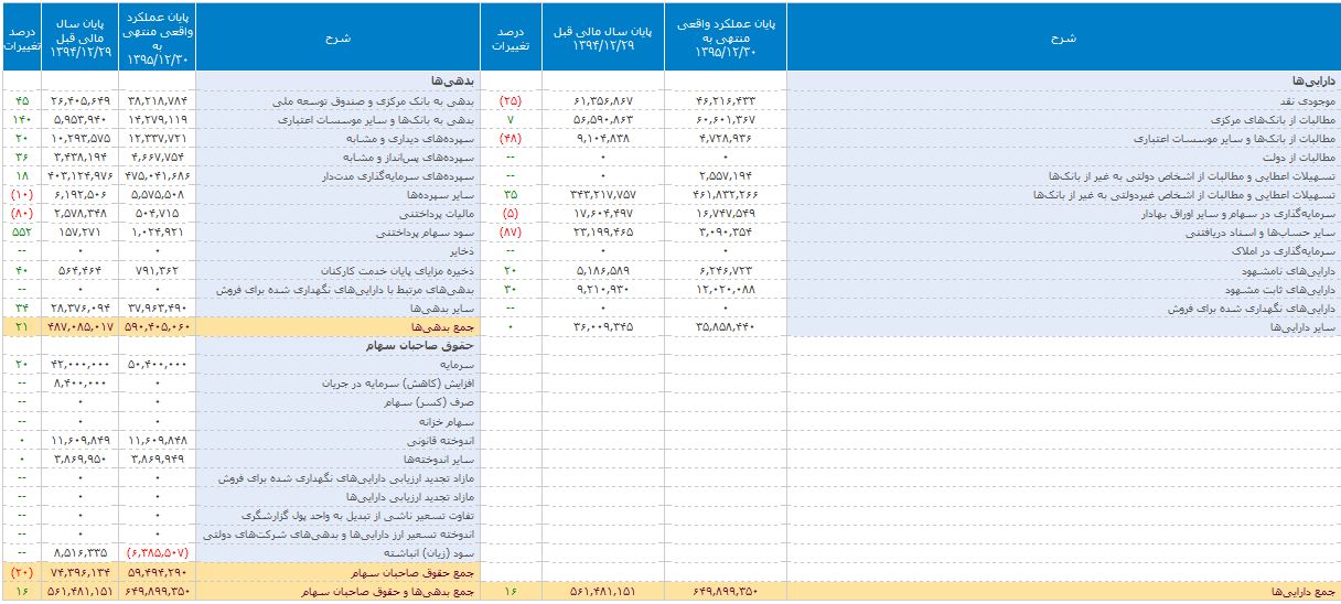 دوره ۱۲ ماهه منتهی به۳۰ اسفند ۹۵