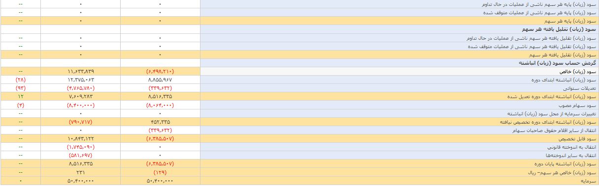 لازم به ذکر است این شرکت براساس عملکرد ۳ ماهه برای سال مالی منتهی به ۲۹ اسفند ماه ۹۶ مبلغ ۱.۴۹۰میلیارد ریال سود خالص محقق کرده است.