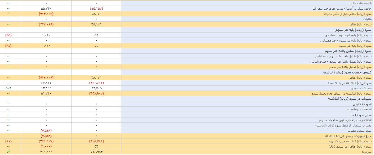بر اساس این گزارش، با احتساب سود انباشته ابتدای سال در نهایت مبلغ ۳۰۸ میلیارد و ۷۴۶ میلیون ریال زیان انباشته پایان دوره در حسابهای این شرکت منظور شد.