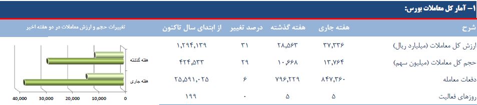 همچنین در ۵ روز کاری هفته گذشته، ارزش کل معاملات اوراق بهادار به ۳۷.۳۳۶ میلیارد ریال بالغ شد که نسبت به هفته ما قبل ۳۱ درصد افزایش یافته است. از سویی دیگر، در این دوره زمانی، تعداد ۱۳.۷۶۴ میلیون انواع اوراق بهادار در بیش از ۸۴۷ هزار دفعه مورد معامله قرار گرفت که ۲۹ افزایش را نسبت به هفته گذشته تجربه کردند.
