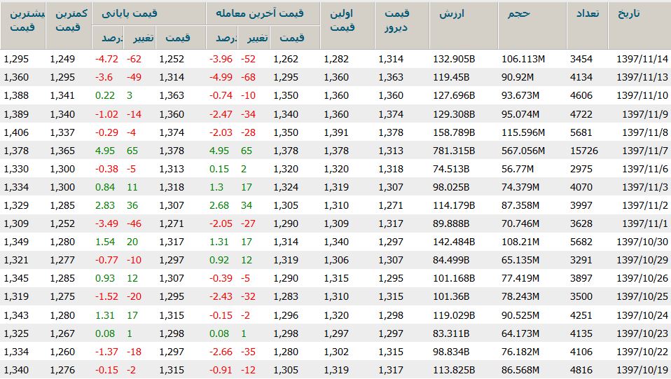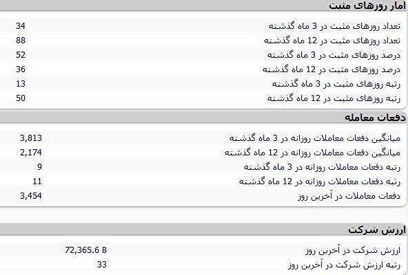 روزهای معاملاتی مثبت، دفعات معامله، ارزش و رتبه شرکت