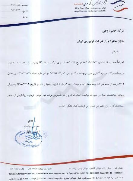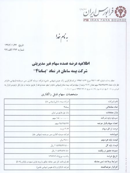 عرضه عمده ۳.۰۴ درصدی سهام غیرمدیریتی بیمه سامان