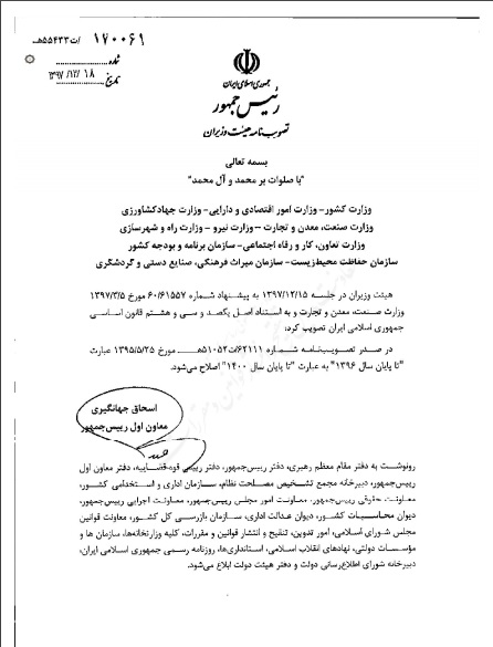 معاون اول رییس‌جمهور ابلاغ کرد؛