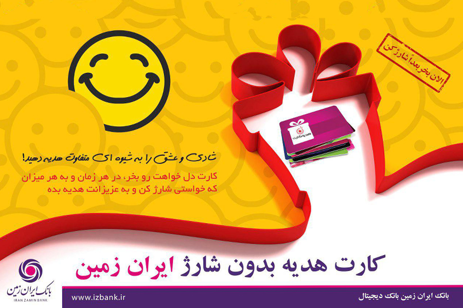 مشتریان بانک ایرانزمین از این پس میتوانند، کارت هدیه بدون شارژ اولیه را از تمامی شعب بانک ایرانزمین در سراسر کشور تهیه و از طریق درگاه شارژ هدیه کارت به آدرس اینترنتی https://giftcard.izbank.ir آن را تا سقف ۵ میلیون ریال شارژ کنند.