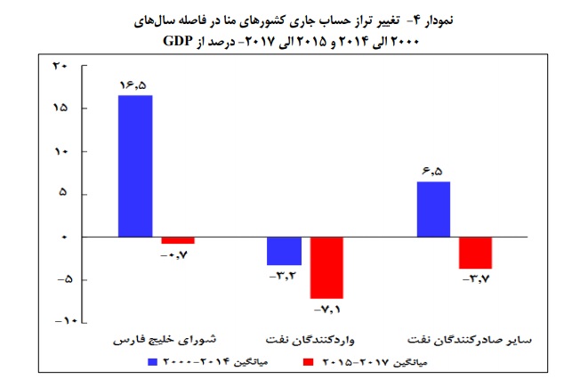گزارش بانک جهانی نشان می دهد که کشورهای صادر کننده نفت، به طور تاریخی از مازاد بالای حساب جاری برخواردار بوده اند اما این وضعیت طی سال های اخیر تغییر کرده است. تراز حساب جاری منطقه منا در حال کاهش است که افت مزبور برای اقتصادی عضو شورای خلیج فارس قابل توجه است.