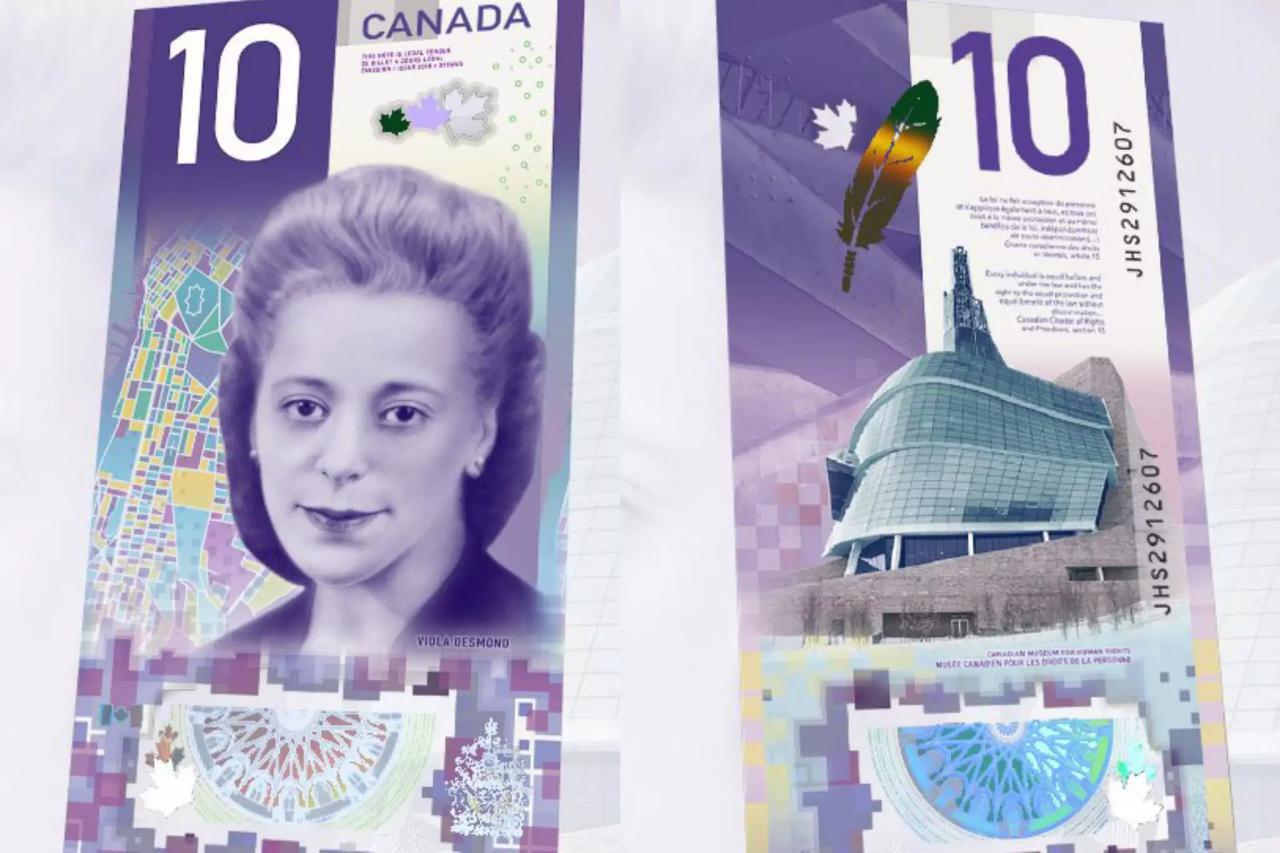 اسکناس ۱۰ دلاری جدید در زمینه خود دارای تصویری عمودی منقش به ویولا دموند، کارآفرین و فعال اجتماعی زن اهل استان "نوا اسکوشیا" این کشور است. دموند اولین زن کانادایی است که تصویر آن بر روی اسکناسهای این کشور نقش میبندد. پیش از این در بین کشورهای قلمرو پادشاهی بریتانیا، تنها تصویر زنان عضو خاندان سلطنتی انگلیس نظیر ملکه الیزابت بر روی اسکناسها دیده شده بود.