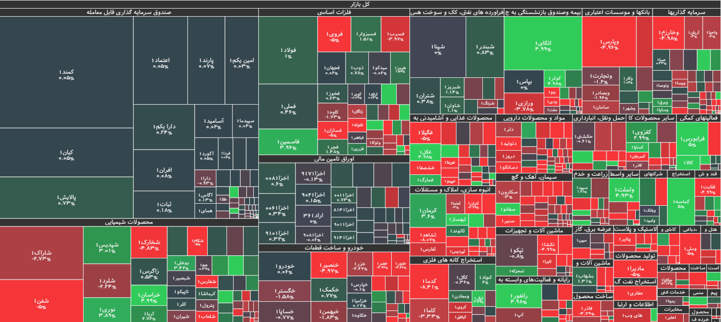 در این بازار هم امروز بیشترین اثر منفی بر شاخص فرابورس به نام نمادهای معاملاتی صنعتی مینو، تولید نیروی برق دماوند و گروه سرمایهگذاری میراث فرهنگی شد و در مقابل شرکتهای پلیمر آریا ساسول، فرابورس ایران و فولاد هرمزگان جنوب امروز بیشترین اثر مثبت را بر این شاخص به نام خود ثبت کردند.